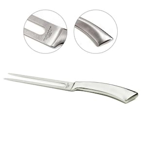 Além disso, o cabo possui uma tecnologia especial de fabricação, fazendo com que o garfo seja oco e leve, pesando apenas 210g o que causa um equilíbrio perfeito entre o corpo e a lâmina, sendo mais fácil e prático o manuseio.