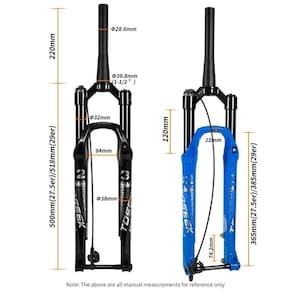 Observações É importante verificar a compatibilidade do garfo com o quadro da sua bicicleta antes da compra. Para o diâmetro do tubo de direção, certifique-se de verificar se a sua bicicleta usa 28.6mm ou 31.8mm. Marca: Não Informado