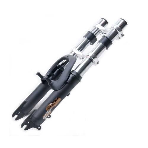 Suspensão aro 20 para downhill modelo Gordo 620 Esta suspensão possui curso maior 40mm , proporcionando maior conforto e segurança ao ultrapassar obstáculos ou pedalar em terrenos muito irregulares, como as trilhas. Confira os detalhes abaixo para certificar-se da compatibilidade desta suspensão com a sua bicicleta. Compatibilidadea Suspensão Gordo 620 é compatível com bicicletas de aro 20 da modalidade downhill e quadro de encaixe 21,1mm Standard padrão . Compatível com sistema de freios para V-Brake ou Disco IS. Medidasmedida da Espiga: Standard 21,1mm interna.Comprimento da Espiga: 18cm com 8cm de rosca.Comprimento total: 56cmMedida interna da espiga é de 21,1mm e externa 25,4mm.Peso Aproximado: 3.090 gramas. Curso de Amortecimento e regulagemPara oferecer o amortecimento necessário para a prática de downhill, esta suspensão possui 40mm de curso e usa o sistema de molas. Conta com dois andares e seis regulagens parafusos . Especificaçõesmarca: ZoomModelo: 620 DHMaterial: Aço Carbono e AlumínioCor: Preto Fosco e CromadoPeso: 3.090 gramasAro: 20Medida da Espiga: Standard 21,1mm internaCurso de Amortecimento: 40mmComprimento total: 56cmComprimento espiga: 18cm com 8cm de roscaCompatibilidade de Freios: V-Brake ou Disco ISTipo de Amortecimento: MolasModalidade: MTB / DownHillPossui 6 regulagens parafusos Observação: Medida interna da espiga é de 21,1mm e externa 25,4mmOrigem: China - Contém: 1 Suspensão Downhill Aro 20 Zoom Gordo 620 Obs.: as imagens são ilustrativas e os podem ocorrer pequenas variações de cores e detalhes nos produtos.