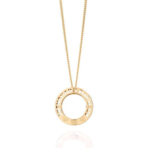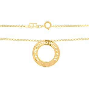 Gargantilha abençoado por deus rommanel folheado a ouro dourada - Gargantilha formada por fio 0,40 lixado com pingente no formato redondo com descrição vazada abençoado por deus com detalhe de 3 corações trabalhados. Med. 50 cm ajustável à 45 cm.Características gerais do produto:Acompanha o produto: O que vem junto- certificado de joia oficial rommanel- etiqueta do produto- caixinha exclusiva de presente- sua jóia perfeitamente embalada e protegida.Garantia: 1 ano