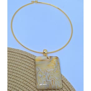 Colar aro dourado com detalhe pedra retangular grande pingente madripérola