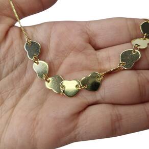 Gargantilha Choker Folheada a Ouro com Medalhas de Coração A Gargantilha Choker Folheada a Ouro com Medalhas da Bialluz é banhado a ouro garantindo alta resistência e durabilidade. A corrente possui 42,5 cm de comprimento, mas é totalmente regulável podendo ser usada por qualquer pessoa, além de contar com um pingente maravilhoso que emanará ótimas energias em sua vida. É uma maravilhosa opção de presente, com certeza a pessoa que receberá sentirá muita gratidão por ter uma peça tão bela.