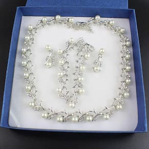 Conjunto colar, brinco e pulseira em pérola sintética com detalhes em strass.Colar com 38cm de comprimento + 10 cm de regulagemPulseira com 16cm de comprimento + 6 cm de regulagemUma linda peça para ser usada nas ocasiões mais importantes de sua vida.Acompanha caixa de presente.--------------------- BIG BOOST ------------------------Gargantilha Colar Brinco Pulseira Noiva Prata Strass PerolaVendas nos últimos 60 diasmarca: Love Bijouxmodelo: Prata pérola e strassmaterial da cadeia: Banhado a ourocomprimento: 48 cmestilos: Gargantilhawith pendant: Simmaterial do pingente: pérolacom pedras: Simtipos de pedras: Cristal Austríaco,strass,pérolagenero: Mulherunidades por embalagem: 01