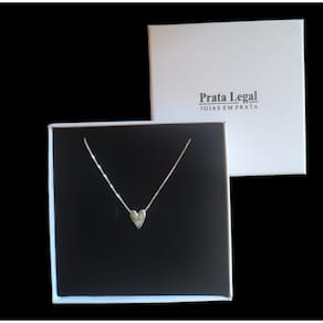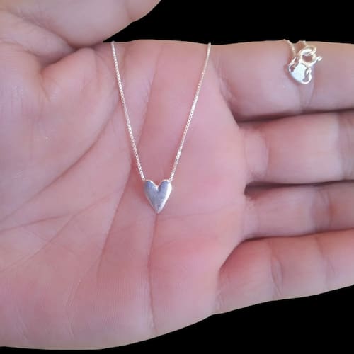 Gargantilha Coração Liso de Prata 925. Corrente em malha   veneziana.