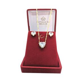 quando falamos em acessórios: elegância, beleza e praticidade são os fatores mais decisivos. Por isso apresentamos a vocês esse lindo kit composto por uma corrente colar grumet com pingente de pedra em formato coração e brinco solitário em pedra zircônia também com formato coração. A malha grumet é linda e possui um corte arrojado, favorecendo ainda mais o brilho e conforto. Já a zircônia em formato coração, garante luxo e sofisticação para o conjunto. São pedras sintéticas de qualidade internacional e brilho próprio. Esse kit de semijoias pode servir tanto para o dia a dia , por exemplo em seu trabalho , como para noites casuais. Tenha o melhor dos dois mundos: conforto e beleza adquira já esse lindo modelo. Nós da butique da beleza temos as peças mais exclusivas para os clientes mais exigentes. O que oferecemos um banho de ouro 18k, com qualidade , cor e tonalidade idênticas ao de uma peça de ouro 18k. Vendemos a experiência de você poder usar um produto arrojado, se sentir bela o e elevar sua autoestima. Embalagem caixa veludo de luxo foto do anúncio para você guardar sua semijoia e mantê-la brilhante por muito tempo. É bijuteria ou semijoia todas nossas peças são semijoias, ou seja a deposição de ouro sobre o metal pode ser até 250 vezes maior que a quantidade de ouro 18k depositada em uma peça de bijuteria. Portanto o que nós oferecemos é qualidade. As semijoias dão alergia não, nossos produtos são níquel free, cádmio free e cinza free, todos esses compostos químicos são alérgicos e estão fora de nosso processo de produção. Tem garantia sim , 6 meses mediante apresentação do certificado de garantia Marca: Butique Da Beleza