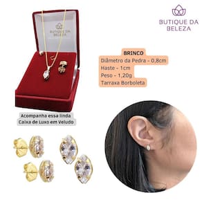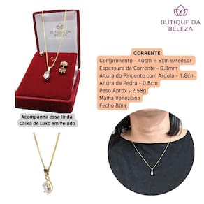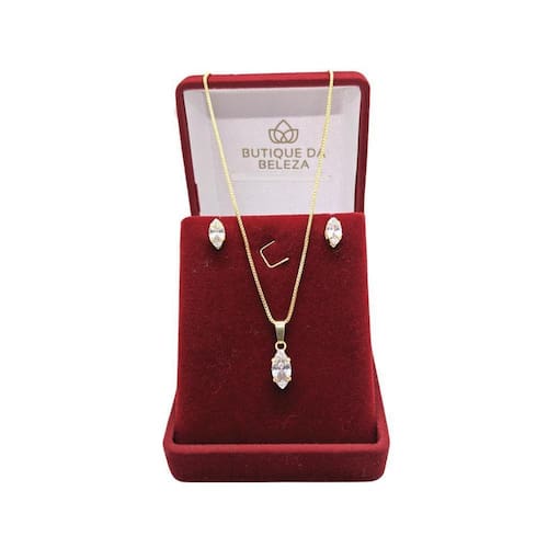 Gargantilha Folheada A Ouro Veneza 40Cm E Brinco Solitário Navete De Zircônia Nosso compromisso com você Somos a butique da beleza, empresa especializada no comércio de cosméticos e semijoias. Estamos sempre entre os melhores vendedores. Seu conforto e segurança são os nosso propósitos Servir e ajudar são nossos deveres Especificações do produto Corrente Comprimento - 40cm + 5cm extensor Espessura da corrente - 0,8mm Altura do pingente com argola - 1,8cm Altura da pedra - 0,8cm Peso aprox - 2,58g Fecho bóia Malha veneziana Brinco Diâmetro da pedra - 0,8cm Haste - 1cm Peso - 1,20g Tarraxa borboleta Descrição do produto Colar corrente feminina folheada a ouro 18k veneziana com pingente navete de zircônia e brinco solitário navete de zircônia Quando falamos em acessórios: elegância, beleza e praticidade são os fatores mais decisivos. Por isso apresentamos a vocês esse lindo kit composto por uma corrente colar veneziana com pingente de pedra em formato navete e brinco solitário em pedra zircônia também com formato navete. A malha veneziana é linda, leve e recai perfeitamente no busto além de não enrolar no cabelo. Possui laminação moderna, sendo um dos modelos mais tradicionais de correntes atualmente. Já a zircônia navete, garante sofisticação e brilho para o conjunto. A zircônia é um brilhante sintético de qualidade internacional que possui brilho próprio. Esse kit de semijoias pode servir tanto para o dia a dia , por exemplo em seu trabalho , como para noites casuais. Tenha o melhor dos dois mundos: conforto e beleza Adquira já esse lindo modelo. Nós da butique da beleza temos as peças mais exclusivas para os clientes mais exigentes. O que oferecemos Um banho de ouro 18k, com qualidade , cor e tonalidade idênticas ao de uma peça de ouro 18k. Vendemos a experiência de você poder usar um produto arrojado, se sentir bela o e elevar sua autoestima. Embalagem Caixa veludo de luxo foto do anúncio para você guardar sua semijoia e mantê-la brilhante por muito tempo. É bijuteria ou semijoia Todas nossas peças são semijoias, ou seja a deposição de ouro sobre o metal pode ser até 250 vezes maior que a quantidade de ouro 18k depositada em uma peça de bijuteria. Portanto o que nós oferecemos é qualidade. As semijoias dão alergia Não, nossos produtos são níquel free, cádmio free e Cinza free, todos esses compostos químicos são alérgicos e estão fora de nosso processo de produção. Tem Sim , 6 meses mediante apresentação do certificado de Marca: Não Informado