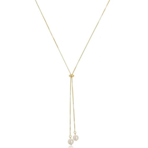 Gargantilha Gravata Pérola Banhada a Ouro 18k 1637 Gargantilha: corrente medindo 60cm de comprimento com 2 pérolas de 7mm