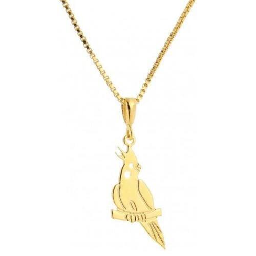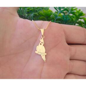 Gargantilha Pingente Calopsita Banhado a Ouro 18k Tamanho padrão da corrente 45cm Tamanho do Pingente: -Altura 2,2cm -Comprimento 1cm -Espessura: 0,1mm Peso: 2,5g -acompanha embalagem para presentear -acompanha certificado de garantia -temos uma equipe preparada para te auxiliar no pós venda Jhulias Joias e Semi Joias Qualidade e garantia
