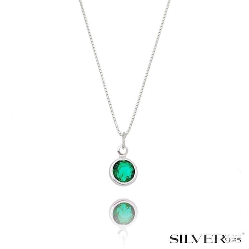 Gargantilha Ponto De Luz Verde Redondo 6Mm Prata 925 Oferta