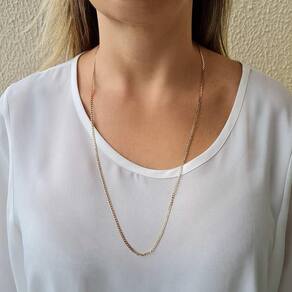 Com um design moderno, essa gargantilha é formada por fio de elos 1x1 mm diamantados, proporcionando um visual delicado e refinado. Seu comprimento de 70 cm permite que seja usada de diversas maneiras, dando versatilidade para compor diferentes looks.