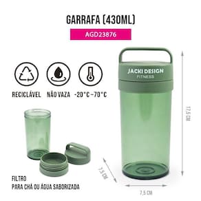 O copo transparente de 430 ml é ideal para levar água, suco ou chá para o escritório ou escola. Possui um filtro infusor, fecho colorido e alça de mão. É leve e fácil de carregar. Produto com qualidade Jacki Design. Conheça a linha completa da coleção JOY e complete o seu kit! (INSTRUÇÕES DE USO: Não vai ao micro-ondas ou lava-louças; Temperatura de uso: -20C ~80C; Limpe usando uma esponja macia e detergente).