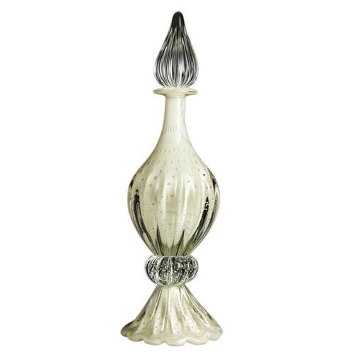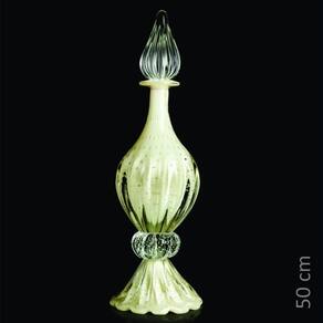 Garrafa Com Base Em Cristal Murano Pérola São Marcos 50cm Garrafa Com BaseEm Cristal Murano Transparente - São Marcos é uma peça decorativa produzida 100% artesanalmente com a técnica secular e originária da Itália, a qual com muita maestria e criatividade são desenvolvidas e preservadas no brasil pela Cristais São Marcos desde 1962.