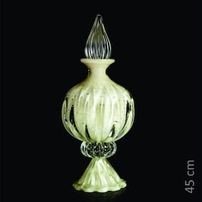 Garrafa Com Base Em Cristal Pérola - São Marcos 45cm Garrafa Com Base Em Cristal Pérola - São Marcos é uma peça decorativa produzida 100% artesanalmente com a técnica secular e originária da Itália, a qual com muita maestria e criatividade são desenvolvidas e preservadas no brasil pela Cristais São Marcos desde 1962.