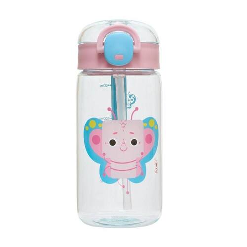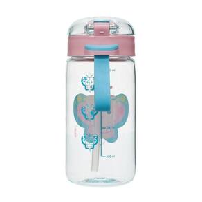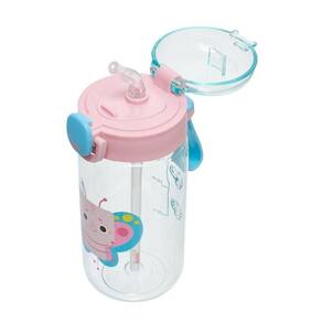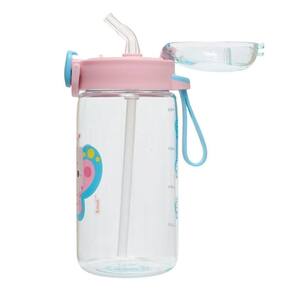 Garrafa de plástico que conta com canudo e silk frontal.