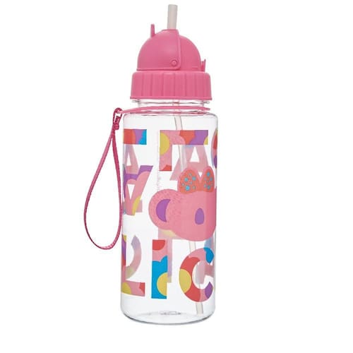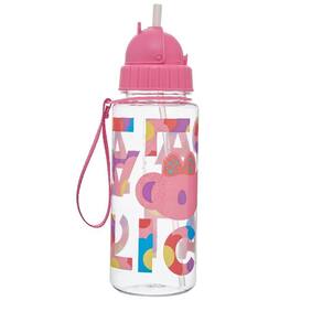 Garrafa com canudo Lilica Ripilica, confeccionada em plástico estampado, canudo de silicone, tampa de rosquear e etampa exclusiva.