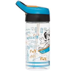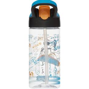 Garrafa de plástico Tigor que conta com canudo, alça para pendurar e silk frontal.