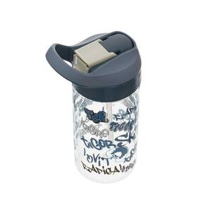 Garrafa de plástico Tigor que conta com canudo, alça para pendurar e silk frontal.