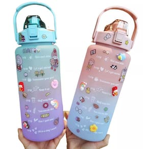 -Com cores lindas em degrade e super na moda, acompanha 2 tipos de adesivo uma cartela com adesivos convencionais que pode molhar e não danifica e também 4 adesivos 3D para deixar sua garrafa ainda mais linda e charmosa.