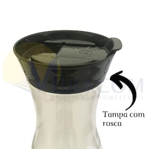 Garrafa plástica com capacidade para 1,8 litros. Possui tampa com rosca e sobre tampa de encaixe. Produzido em material atóxico.