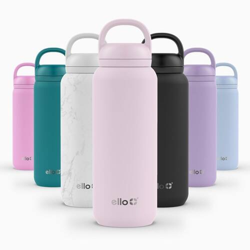 Ello Garrafa de água Cooper Twist de aço inoxidável de 947 ml com tampa de chug | à prova de vazamento | Parede dupla e isolada a vácuo | Alça de transporte embutida | Segura para lava-louças | Rosa - Bico de mandril: o bico estilo chug fácil de usar proporciona um fluxo suave e contínuo de hidratação, enquanto a alça incorpora uma alça de transporte fácil de usar - Mantém frio o dia todo: parede dupla e isolamento a vácuo para manter as bebidas frias por até 24 horas. Mantenha-se hidratado não importa onde a vida o leve com nossa garrafa de água confiável. - 100% à prova de vazamento: nossa garrafa possui uma vedação de parafuso segura e à prova de vazamentos, permitindo que você a jogue em sua bolsa sem preocupações. - Fácil de viajar: leve sua garrafa de água onde a vida levar você, graças à alça de transporte embutida. Prenda-o à sua mochila, bolsa de ginástica ou carregue-o à mão. - Fácil de limpar: a tampa pode ser lavada na prateleira superior da lava-louças, o que facilita a limpeza. Recomendamos lavar o corpo à mão para maior longevidade, sinta-se à vontade para jogá-lo na máquina de lavar louça, se preferir. Todas as peças são livres de BPA.