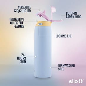 Ello Pop & Fill Garrafa de água de aço inoxidável de 640 ml com tecnologia de enchimento rápido, metal isolado a vácuo de parede dupla, tampa de bloqueio à prova de vazamento, Sip and Chug, - Tampa de enchimento rápido: Livre-se do incômodo de desaparafusar as tampas. Em vez disso, abra para recargas rápidas e convenientes em segundos, mantendo você em movimento sem perder o ritmo. - Gole duplo e chugue: Pop & Fill se adapta às suas necessidades de hidratação - beba um canudo com o apertar de um botão ou abra-o para uma bebida saudável. - 100% à prova de vazamento: carregue com confiança! A garrafa possui uma vedação segura e à prova de vazamento, permitindo que você a jogue em sua bolsa sem preocupações. O mecanismo de bloqueio adicional garante tranquilidade sem derramamentos em mochilas, bolsas e bolsas de ginástica. - Seguro para lava-louças: manter sua garrafa de água limpa nunca foi tão fácil. Todas as partes do Pop & Fill podem ser lavadas na lava-louças, facilitando a limpeza. - Fácil de viajar: leve sua garrafa de água onde a vida levar você, graças ao laço de transporte integrado. Prenda-o à sua mochila, bolsa de ginástica ou carregue-o à mão. A capa protetora do bico garante um bico limpo, tornando-a perfeita para o seu estilo de vida em movimento.