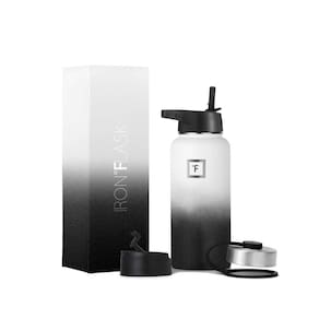 GARRAFA DE ÁGUA ESPORTIVA ISOLADA: Adeus, suor! O isolamento de parede dupla torna o Iron Flask livre de suor! Ele mantém sua bebida FRIA por até 24 horas e QUENTE por até 12 horas. *NOTA: SOMENTE 14 onças, 18 onças e 22 onças cabem em porta-copos*