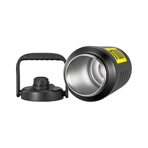 A garrafa é feita com aço inoxidável, e possui isolamento térmico de parede dupla com vácuo, livre de BPA.