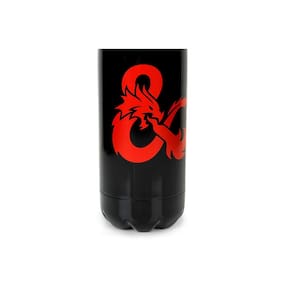 - Traga seu orgulho D&D para a mesa: um jogo icônico popularizado nos anos 70 e 80, Dungeons and Dragons cativou as mentes de muitos jogadores de fantasia de aventura! O logotipo Dragon e comercial utilizado na série agora pode estar em suas mãos na forma desta garrafa de água!