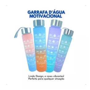 Garrafa De Água Motivacional 300ml Booglee Garrafa de Água 300 ML com frase motivacional e marcação de nível de água por horário, para fazer um melhor acompanhamento diário da quantidade de água tomada.