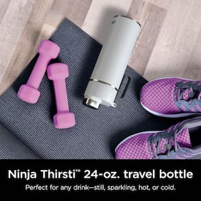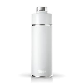 Garrafa de água de viagem Ninja Thirsti de 18 onças, para bebidas gaseificadas, mais fria e efervescente por mais tempo, à prova de vazamentos, 24 horas fria, lavável na máquina de lavar louça, copo isolado em aço inoxidável, branco nublado, DW1801WH