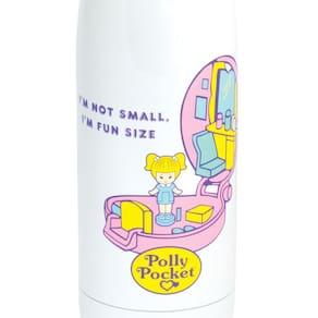 - Design divertido: a garrafa de água branca apresenta Polly e diz "I'm Not Small, I'm Fun Size".