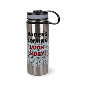 - Design imperial: você nunca sabe quando Darth Vader pode estar por perto para lhe dar uma avaliação de desempenho. Esta cantina prateada apresenta um grupo de Stormtroopers imperiais em atenção com o texto "Vader's Coming, Look Busy"
