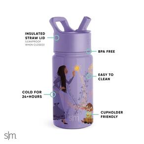 Simple Modern Disney Wish Garrafa de água infantil com tampa de canudo | Copo de aço inoxidável isolado reutilizável para meninas, escola | Coleção Summit | Garrafa de água de 400 ml - Isolamento de parede dupla: mantém as bebidas em temperaturas ideais por horas - À prova de vazamento quando o bocal está na posição fechada; não recomendado para bebidas quentes ou gaseificadas. - Livre de BPA e lavável na lava-louças na prateleira superior - Compatível com porta-copos: as garrafas de 290 a 500 ml servem na maioria dos porta-copos. A garrafa perfeita para todos os fãs do Disney Wish! - Garantia vitalícia limitada e patente pendente