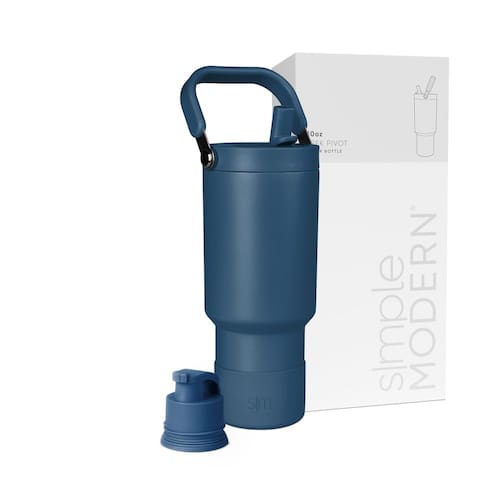 Simple Modern Trek Pivot | Copo de canudo flip de 850 g com alça | Garrafa de água e bota | Canudo intercambiável e tampas de chug | Jarro de aço inoxidável isolado | academia esportiva ao ar livre | - Tampa multiuso: com duas peças de tampa intercambiáveis, você pode escolher o seu método de gole preferido - canudo ou chug - e trocar facilmente o componente de beber dentro da tampa a qualquer momento. - Funcional: porta-copos amigável com um design de alça ergonômica, permitindo uma aderência confortável e facilidade de transporte ao girar de uma atividade diária para outra. - Isolamento de parede dupla: mantém as bebidas frias ou quentes por horas. - Durável: Feito de aço inoxidável 18/8 premium e vem com uma bota de silicone para suavizar aterrissagens e melhorar a estabilidade. - Garantia vitalícia limitada e patente pendente