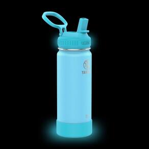 Takeya Garrafa de água que brilha no escuro Actives Kids com tampa de canudo - Garrafa de aço inoxidável com tampa sem BPA - Garrafa de água reutilizável e segura para lava-louças - 510 g, azul verme - Garrafa de água exclusiva para crianças: possui um amortecedor e tampa que brilha no escuro, tornando-a uma garrafa de água perfeita para a escola e uso diário por crianças - Garrafa com isolamento duplo: esta garrafa de água mantém as bebidas frias por 24 horas, garantindo uma garrafa de água reutilizável de alto desempenho - Construção livre de BPA: a garrafa é feita com aço inoxidável seguro de alta qualidade e a tampa é feita com materiais livres de BPA para tranquilidade - Tampa conveniente com alça de laço: garrafa de água fácil de transportar com uma alça de tampa embutida, ideal para atividades ao ar livre crianças ativas - Garrafa e tampa seguras para lava-louças: este design de garrafa de água e tampa simplifica a limpeza graças aos materiais seguros para lava-louças, perfeito para famílias ocupadas