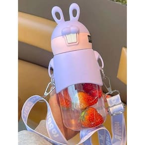Garrafa de água temática infantil coelho não vaza com alça Cor: lilás a garrafa de coelhinho possui um design lindo e fofo no qual podemos amam carregar para todo lugar de forma divertida, pois a garrafa acompanha uma alça de sustentação ajustável podendo ser levada com segurança, de forma fácil e sem medo de perder. o material é de vidro, super resistente e possui os detalhes no design de silicone em formato de coelho. possui canudo para melhor facilitar na hora de beber, alem de ter uma proteção maior na parte do tampa garantindo que a garrafa não vaze. ------------------ Atenção ------------------ Recomendamos lavar com água quente antes do primeiro uso. Modo de uso: 1- para abrir basta apertar no dentinho da garrafa. 2- você pode retirar/colocar a alça pelo mosquetão. ------------------ Perguntas frequentes ------------------ a garrafa vaza R: possui uma proteção maior na parte da tampa garantindo que a garrafa não vaze. quantos ml cabe na garrafa R: 600ml. qual o material da garrafa R: a garrafa é de vidro. a garrafa possui adesivo R: sim, a garrafa acompanha adesivo . ------------------ Especificações ------------------ Altura: 23cm. Largura: 8cm. Capacidade: 500ml. Material: vidro e silicone. ------------------ Conteúdo ------------------ 1x garrafa. 1x canudo 1x alça de sustentação. 1x adesivo . Anúncio referente a garrafa ------------------ Apresentação: ------------------ Atuamos no mercado desde 2019 como loja de departamentos. Nosso principal compromisso é sempre estar inovando e oferecendo variados produtos com qualidade incomparável, para que você tenha uma experiência mágica e única ao obter os nossos produtos. Todos os nossos produtos passam por um amplo teste de qualidade antes de serem vendidos. Os produtos são testados e vistoriados antes de serem enviados aos clientes, para não ocorrer transtornos. Procuramos embalar os produtos da melhor forma possível, para que o mesmo não venha sofrer durante o transporte e corra o risco de chegar danificado ao consumidor. Nossa equipe é totalmente qualificada e estaremos a disposição para esclarecer as suas dúvidas, solucionar os seus problemas e fornecê-los o melhor atendimento possível. - qualidade garantida. - atendimento qualificado. - enviamos para todo o brasil. - compra garantida. - despachamos em até 1 dia útil após confirmação do pagamento garantimos a devolução por arrependimento em até 7 dias, após o recebimento e de 15 dias contra defeitos de fabricação. Marca: Não Informado