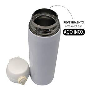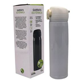 Garrafa de água térmica 500ml inox trava de segurança branca Garrafa isotérmica 500ml com tampa plástica fosca com trava de segurança - branco Produzida para manter suas bebidas favoritas na temperatura ideal e sem preocupações, a garrafa isotérmica oferece praticidade e segurança, tornando-a perfeita para acompanhar você em todas as suas atividades. Com seu design elegante e funcional, contando com uma tampa plástica com borracha interna que resulta em uma melhor vedação, evitando vazamento do líquido, com um botão central na tampa que é acionado com um clique fazendo com que a tampa se abra e com uma trava de segurança que quando colocada para cima, ela não se abre. Confeccionada em aço inoxidável, tem uma excelente durabilidade e é resistente à ferrugem, além de isolamento térmico, que mantém as bebidas quentes por até 8 horas e frias por até 10 horas, podendo desfrutar de uma bebida refrescante ou um café quentinho onde quer que esteja, pois é compacta, leve e versátil.