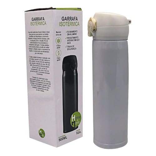 Contém: 01 garrafa isotérmica 500ml com tampa plástica fosca com trava de segurança - branco Marca: Home & More