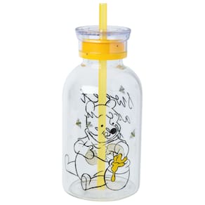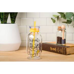 Silver Buffalo Disney Garrafa de leite de vidro Winnie the Pooh Hunny Sweet As Can Bee com canudo, 425 g