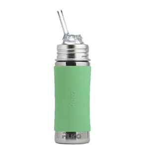 O copo de canudo Pura possui uma garrafa de aço inoxidável de qualidade alimentar (18/8), canudo de silicone de grau médico, capa de viagem, manga e nenhuma peça de plástico! O canudo de silicone incluído apresenta um design de duas peças com um canudo de silicone interno que pode ser separado do bocal para facilitar a limpeza. O bocal de silicone do canudo pode ser utilizado com ou sem o canudo de silicone interno incluído. A palha oferece um fluxo muito rápido. Ideal para crianças de 6 meses a 4 anos, este copo de palha é compatível com todos os componentes de silicone da Pura, incluindo nossos bicos de ventilação natural em várias taxas de fluxo, bico de silicone XL Sipper, discos de vedação e blusa esportiva. Cada copo tem marcas de volume interno pressionadas que podem ser claramente visualizadas no interior da garrafa para facilitar a medição. O frasco também é compatível com bicos e bicos de outras marcas. Com a Pura, você pode ter certeza de que está sempre usando a garrafa mais segura e ecoprogressiva do mercado. Uma vida... uma garrafa