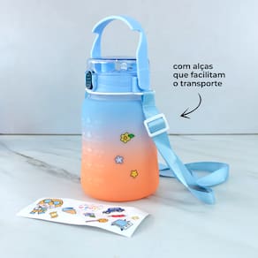 Esta garrafa possuir anel de silicone e tampa flip que evita vazamento de água. Acompanha adesivo e a alça possui apoio para celular. Adequado para casa, escola, camping.
