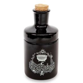 - Encante sua bruxa interior: a parte superior desta garrafa de poção se solta para revelar uma vela de cera de soja. O suporte de vela apresenta motivos Sanderson Sister com iconografia familiar e letras decorativas "Gather 'Round Sisters".