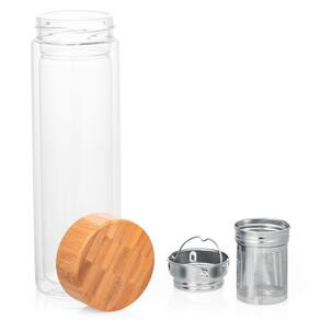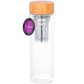 A Garrafa de Vidro Parede Dupla com Infusor 490ml Stilo TopGet é feita de vidro de borossilicato. Ao contrário das garrafas semelhantes, essa garrafa é resistente ao calor e à quebra, portanto, embora seja de vidro, é uma das garrafas mais duráveis de seu estilo. Possui parede dupla com tampa de bambu natural e dois infusores em aço inoxidável. Reutilizável, ecologicamente correto Composição: vidro borossilicato e Bambu Capacidade: até 490ml Medidas: 7,2 x 23,4 cm Recomendações: Lavar com água, sabão neutro e esponja macia. Apta para ir a máquina de lavar Remova a tampa de bambu Embora muito duráveis, as garrafas ainda são de vidro e não são inquebráveis.