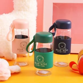 Garrafa De Vidro Infantil com Alça Urso BearMihe 450ML