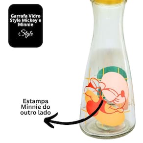 Garrafa de Vidro Style 1 Litro Mickey e Minnie Disney – Tampa Amarela com Bico Anti-vazamento