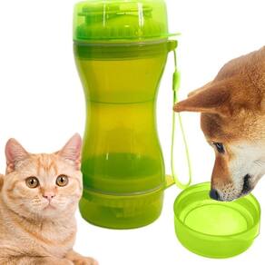 Material: Plástico de alta qualidade, livre de BPA, seguro para alimentos e bebidas. Cor: Verde vibrante, fácil de localizar e estilosa. Capacidade: Compartimento de água com 350 ml e compartimento de ração com 250 g.