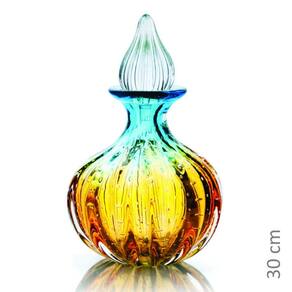 Garrafa Em Cristal Murano Azul E Âmbar São Marcos 30cm Garrafa Em Cristal Murano Água Marinha E Âmbar - São Marcos é uma peça decorativa produzida 100% artesanalmente com a técnica secular e originária da Itália, a qual com muita maestria e criatividade são desenvolvidas e preservadas no brasil pela Cristais São Marcos desde 1962.