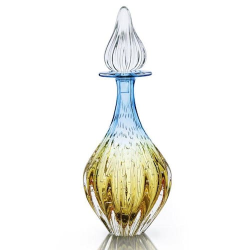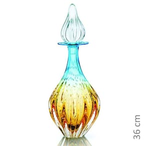 Garrafa Em Cristal Murano Azul E Âmbar São Marcos 36cm Garrafa Em Cristal Murano Água Marinha E Âmbar - São Marcos é uma peça decorativa produzida 100% artesanalmente com a técnica secular e originária da Itália, a qual com muita maestria e criatividade são desenvolvidas e preservadas no brasil pela Cristais São Marcos desde 1962. A tradição do cristal murano e a inovação em detalhes, formas e cores, trazem requinte para a decoração. O colorido do murano em especial, torna-se um coringa na hora de decorar e produz um efeito muito bonito em locais com luz natural, não dependendo de nenhum outro elemento para se destacar. As peças em cristal murano, são atemporais, aposte nelas como a estrela da decoração ou ainda para harmonizar em combinações com diferentes artigos para compor um ambiente. FICHA TÉCNICA Marca: São Marcos Modelo: Garrafa Em Cristal Murano Água Marinha E Âmbar - São Marcos Ref.: 3450ZA Material: Cristal Murano Medidas A x C x L : 36 X 14 X 14 cm Peso: 3,060 Conteúdo Da Embalagem: 01 Garrafa Em Cristal Murano Água Marinha E Âmbar - São Marcos Junto com as peças em murano, leve ainda um pouco de história. Uma dica é misturar diferentes muranos e criar sua coleção de arte particular. O cristal murano, tornou-se objeto de desejo por suas características únicas. Sendo assim, com todas essas particularidades, ele é uma ótima escolha para decorar, colecionar e ainda presentear com classe e sofisticação. IMPORTANTE: Produto produzido de forma artesanal, são admitidas nas características finais do processo de produção desse produto pequenas variações de peso, formato, cor e ainda o aparecimento de minúsculas bolhas de ar, típicas do cristal murano.