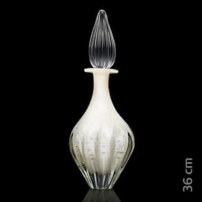 A Garrafa Em Cristal Murano Da São Marcos é uma peça decorativa produzida 100% artesanalmente com a técnica secular e originária da Itália, a qual com muita maestria e criatividade são desenvolvidas e preservadas no brasil pela Cristais São Marcos desde 1962. A tradição do cristal murano e a inovação em detalhes, formas e cores, trazem requinte para a decoração. O colorido do murano em especial, torna-se um coringa na hora de decorar e produz um efeito muito bonito em locais com luz natural, não dependendo de nenhum outro elemento para se destacar. As peças em cristal murano, são atemporais, aposte nelas como a estrela da decoração ou ainda para harmonizar em combinações com diferentes artigos para compor um ambiente. Ficha Técnica Marca: São Marcos Modelo: Garrafa Em Cristal Murano Pérola São Marcos Ref.: 3450PE Material: Cristal Murano Cor: Pérola Medidas A x C x L : 14 x 14 x 36 cm Peso: 3,24Kg Conteúdo Da Embalagem: 01 Garrafa Em Cristal Murano Pérola São Marcos Junto com as peças em murano, leve ainda um pouco de história. Uma dica é misturar diferentes muranos e criar sua coleção de arte particular. O cristal murano, tornou-se objeto de desejo por suas características únicas. Sendo assim, com todas essas particularidades, ele é uma ótima escolha para decorar, colecionar e ainda presentear com classe e sofisticação. IMPORTANTE: Produto produzido de forma artesanal, são admitidas nas características finais do processo de produção desse produto pequenas variações de peso, formato, cor e ainda o aparecimento de minúsculas bolhas de ar, típicas do cristal murano.