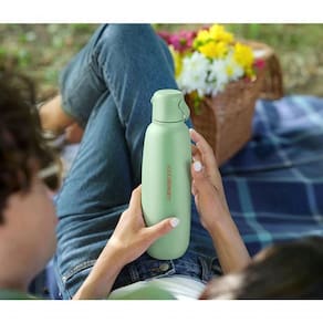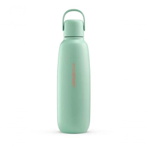 A nova garrafa SodaStream Fizz & Go 900ml em aço inoxidável é perfeita para aproveitar suas bebidas com gás favoritas em casa ou onde estiver!Produzida com parede dupla de aço inox, mantém sua bebida gelada e com gás por té 12 horas.Conta com alça de prática, ideal para levar com você no dia a dia, e seu design foi pensado para encaixar na maioria dos suportes de copo de carro.Especificações do produto:- com máquinas SodaStream Quick Connect, exceto o modelo Gaia- Produzida em aço inoxidável 18/8 de alta qualidade, esta garrafa foi desenvolvida para garantir durabilidade e resistir ao uso diário- Mantém sua bebida quente ou gelada por até 12 horas- As garrafas tem duração de mais de 3 anos porem você pode utiliza-la para bebidas não gasosas indefinidamente- As garrafas Sodastream são compatíveis com lavagem em maquina lava louça Ficha técnica:- Código: 4088930234- Marca: Sodastream- Modelo: Fizz&Go - Conteúdo da Embalagem: 1 Garrafa- Material: Aço inoxidável - Capacidade: 900ml- Cor: Menta- Peso do produto: 0,440kg- Peso com embalagem: 0,512kg- Dimensões: 25,4cm x 7,6cm x 7,6cm (AxLxP)- Garantia: 1 ano